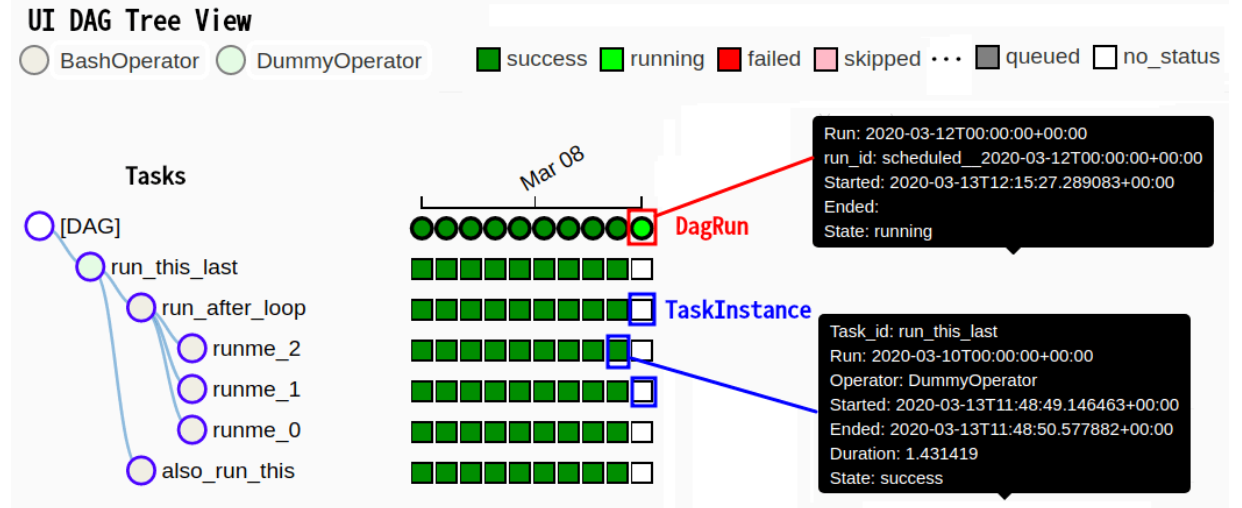 - Dagrun = Dag스케줄러(or Trigger)가 DAG의 execution_date(실행시간)를 정의하고 DagRun이 시간에 맞게 생성된다.