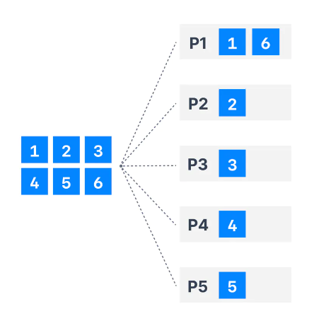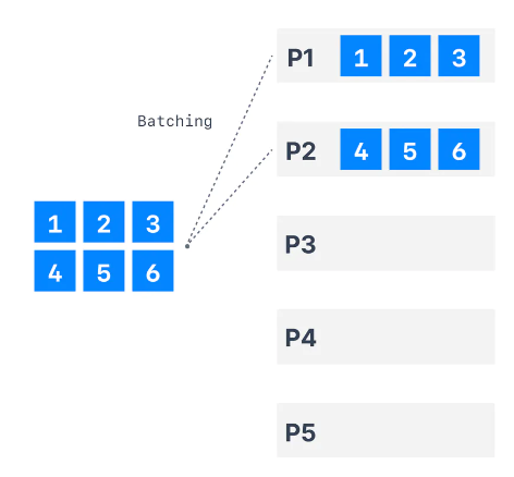 - 한번의 Send에 Partition1은 1,2,3을 받아 처리하고 Partition5는 4,5,6을 받아 처리한다.