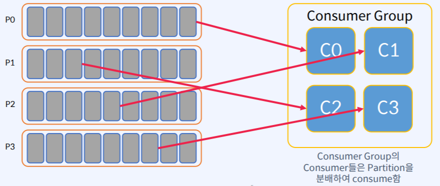 - 각 Consumer들은 정확히 하나의 partition에서 record를 Consume한다.