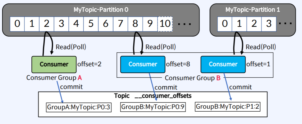 Consumer가 데이터를 읽을 위치를 Commit하여 다시 읽음을 방지한다.
