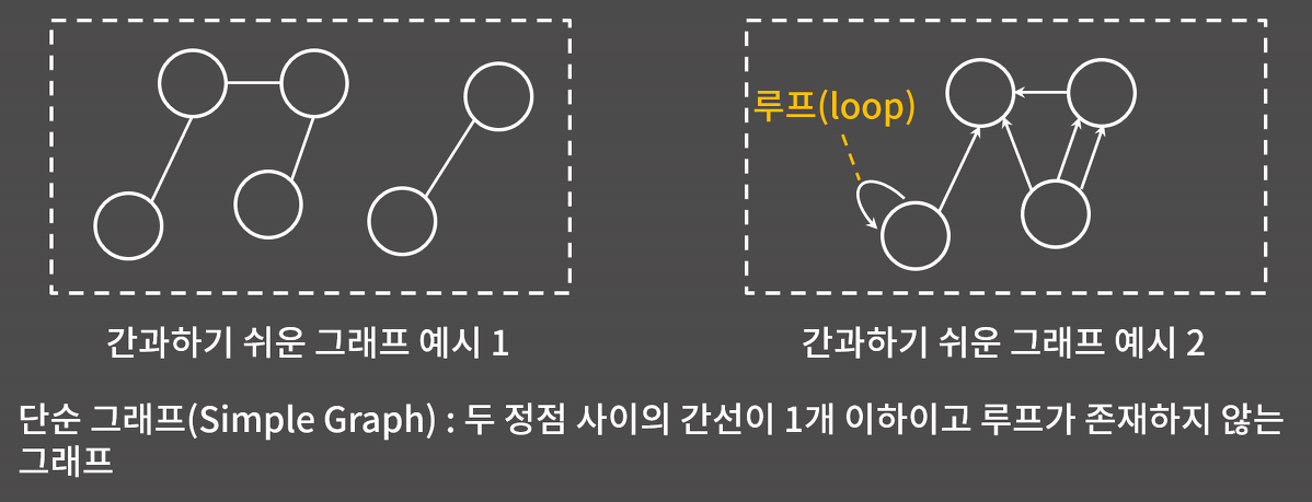 주의점 : 일반적인 코딩테스트에 나오는 그래프는 단순 그래프(정점 사이의 Edge는 한개이며, 루프가 존재하지 않는다 ) 라는 정의가 있어야만 단순 그래프 형식으로 생각해야 된다!