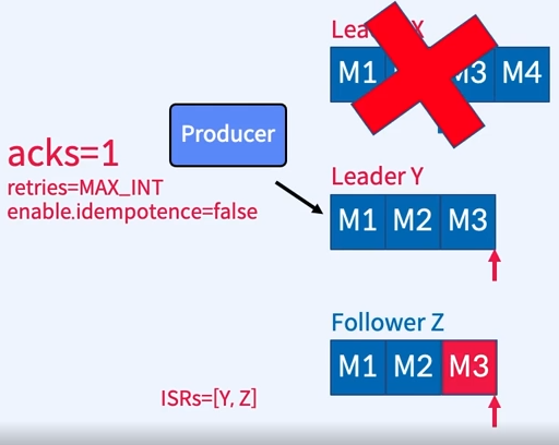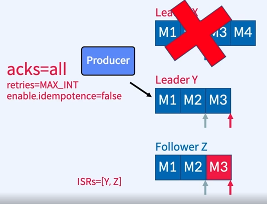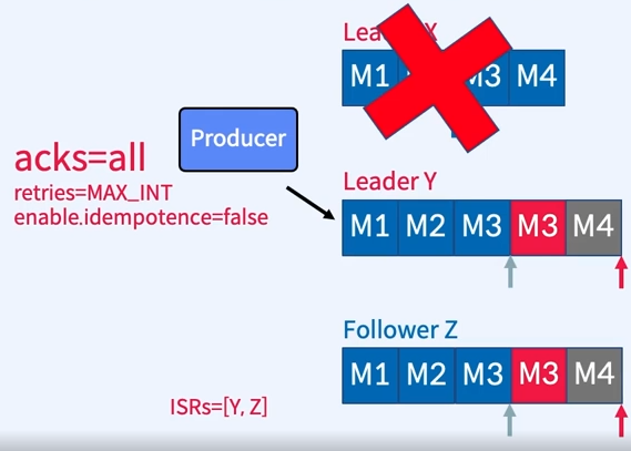 - Broker X는 M3,M4에 대한 Ack를 응답하여 Producer는 재전송하여 주지 않는다.
