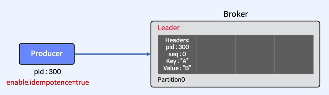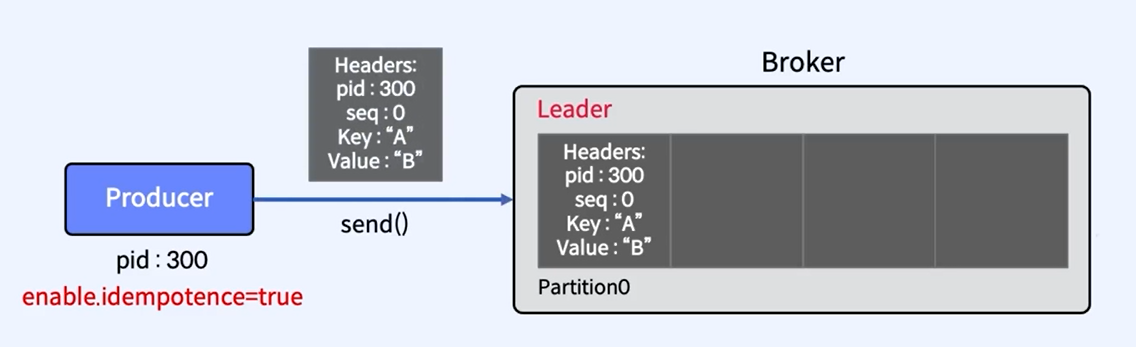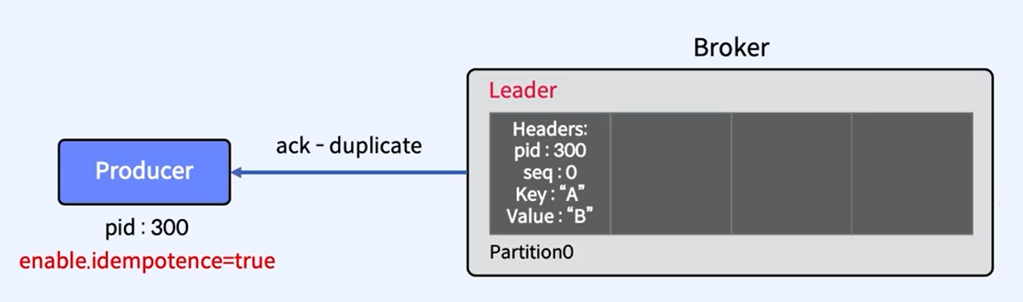 - Producer의 Parameter 중에서 Enable.Idempotence=True 로 설정