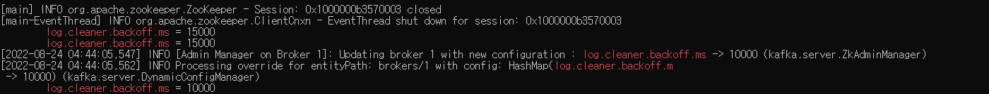 - log.cleaner.backoff.ms 값을 15초에서 10초로 변경하여 보겠습니다.