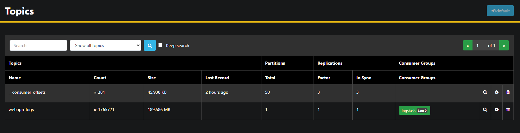 # output output.kafka: # Array of hosts to connect to. hosts: ["172.28.128.1:19092","172.28.128.1:29092","172.28.128.1:39092"] topic: "webapp-logs" compression: gzip1-4) Producing