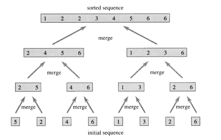 - 나누는 경우 N -> 1 O(N) / 병합하는 경우 1 -> N O(NK) = O(NlogN)
