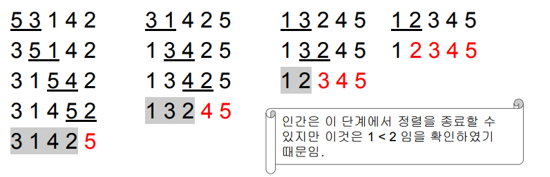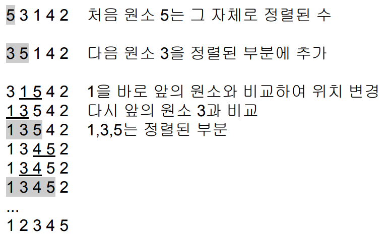 앞은 '이미 정렬이 된 부분' / 뒤는 '정렬할 부분'