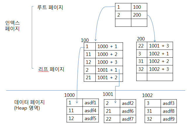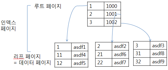 - Index Page를 키값과 데이터 페이지 번호로 구성하고, 검색하고자하는 데이터의 키 값으로 페이지 번호를 검색하여 데이터를 찾는다.