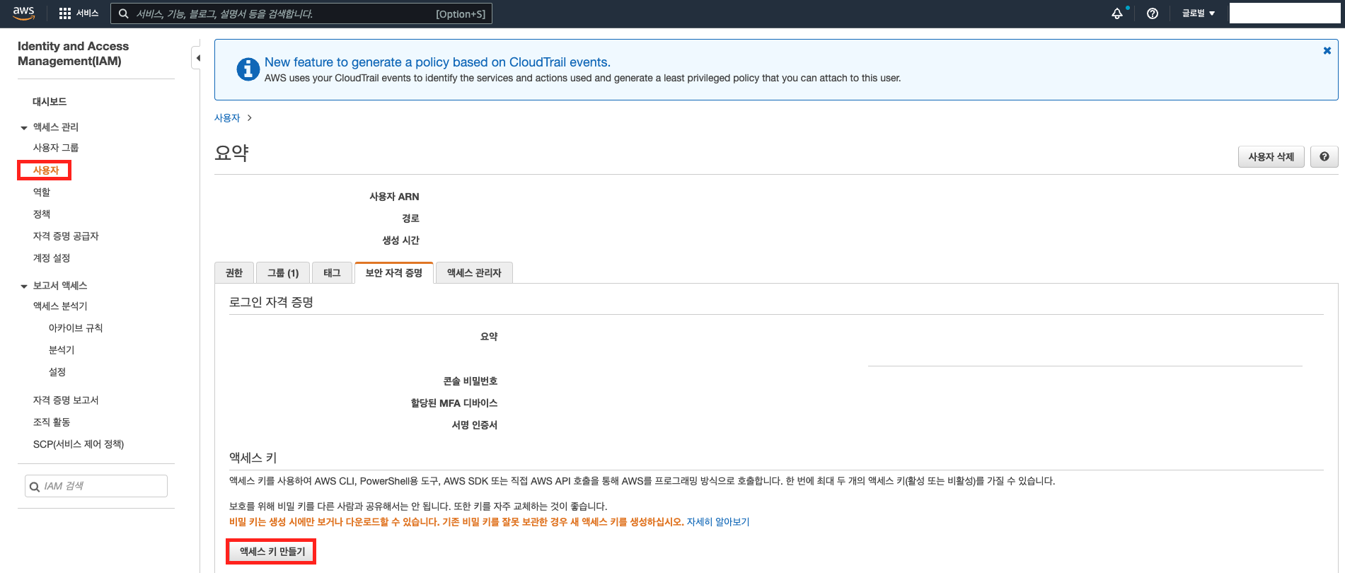 - aws 사용자 계정에서 본인의 계정의 Certification ( access_key_id , access_key ) 다운로드