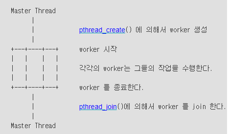 일반적으로 PThread로 불리며, Thread를 지원하기 위한 C 표준 라이브러리 셋을 사용하여 동작시켜야 한다.