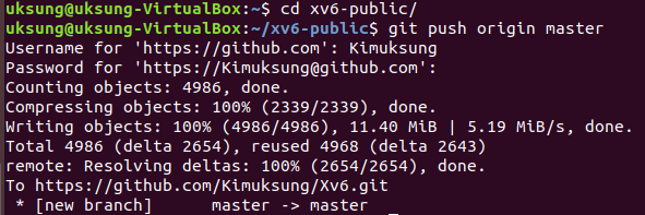 git remote -v//결과 origin https://github.com/mit-pdos/xv6-public.git (fetch) origin https://github.com/mit-pdos/xv6-public.git (push)3. 자신의 github 주소로 변경