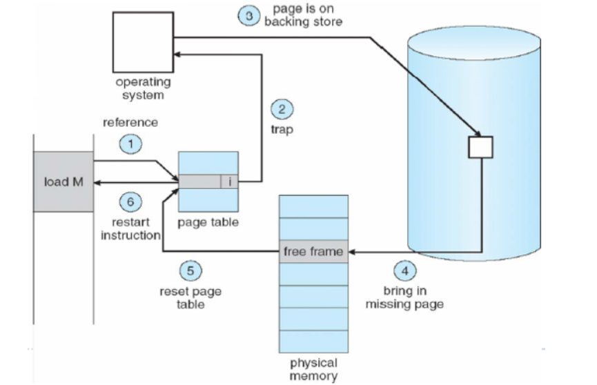 - Disk(페이징 하드웨어)는 page table를 보고 valid인 것을 확인한 후 OS에게 trap으로 알린다.